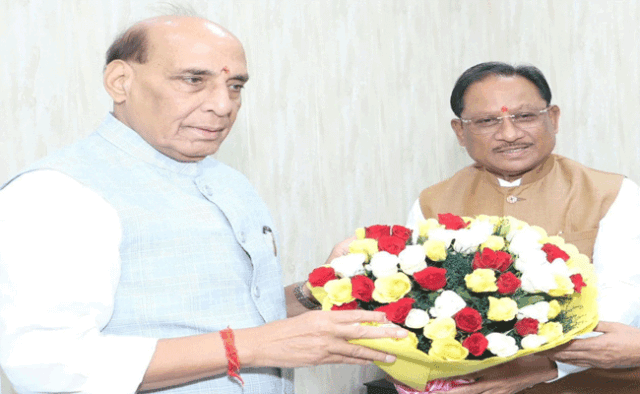 रायपुर। छत्तीसगढ़ के मुख्यमंत्री श्री विष्णुदेव साय ने आज नई दिल्ली में केंद्रीय रक्षा मंत्री श्री राजनाथ सिंह से उनके निवास पर सौजन्य मुलाक़ात की। बैठक में बिलासपुर एयरपोर्ट के विस्तार, रक्षा क्षेत्र के विकास, पूरे प्रदेश में सेना भर्ती रैलियों के आयोजन एवं नौसैनिक पोतों के नामकरण जैसे कई महत्वपूर्ण विषयों पर सार्थक चर्चा हुई। इस अवसर पर केंद्रीय आवासन एवं शहरी कार्य राज्यमंत्री श्री तोखन साहू और मुख्यमंत्री के प्रमुख सचिव श्री सुबोध कुमार सिंह भी उपस्थित थे।