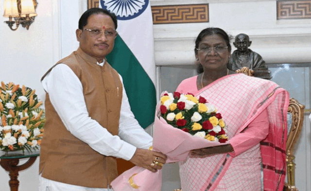 रायपुर। मुख्यमंत्री श्री विष्णुदेव साय ने आज नई दिल्ली स्थित राष्ट्रपति भवन में राष्ट्रपति श्रीमती द्रौपदी मुर्मू से सौजन्य भेंट की।