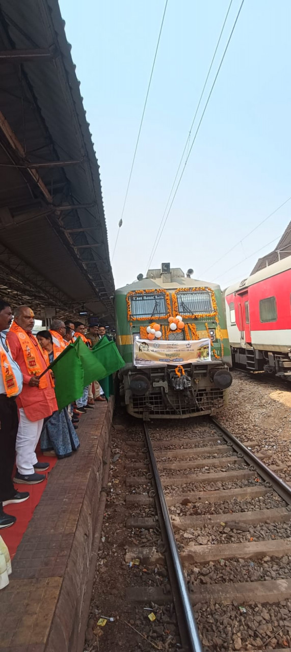 इसी क्रम में आज राजनांदगांव रेलवे स्टेशन से विशेष ट्रेन के आगमन एवं प्रस्थान के अवसर पर श्रद्धा, उत्साह और भक्ति से ओतप्रोत वातावरण देखने को मिला। रेलवे स्टेशन प्रभु श्रीराम के जयघोषों से गूंज उठा। तीर्थयात्रियों के परिजन, नागरिक एवं जनप्रतिनिधि बड़ी संख्या में उपस्थित रहे और यात्रियों को मंगलमय यात्रा की शुभकामनाएँ दीं।