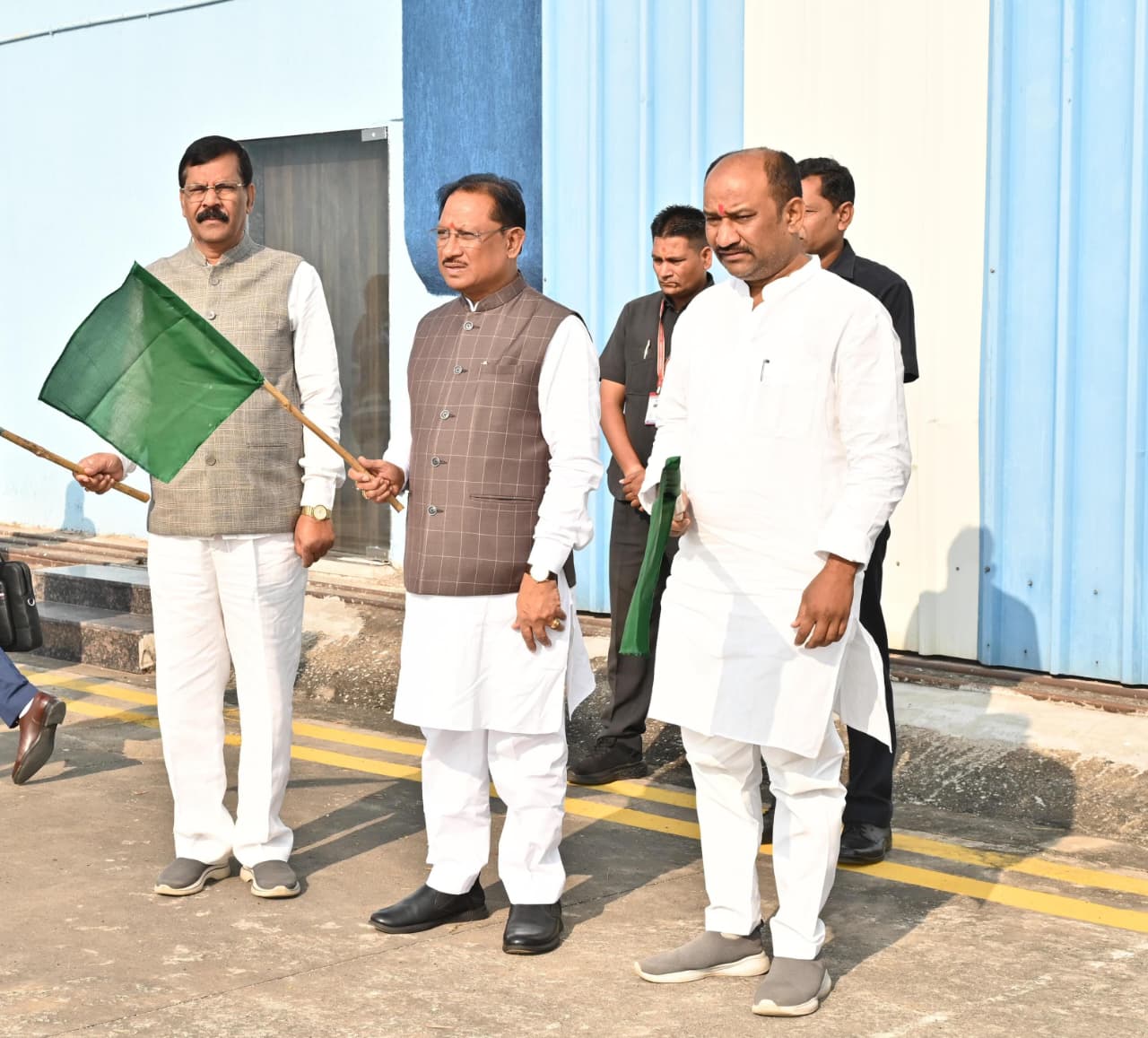 मुख्यमंत्री श्री विष्णु देव साय ने आज स्वामी विवेकानंद विमानतल परिसर, माना कैम्प के समीप स्टेट हैंगर के नियमित परिचालन का शुभारंभ किया। शुभारंभ के पश्चात मुख्यमंत्री श्री साय अपने गुजरात प्रवास हेतु इसी हैंगर से रवाना हुए।